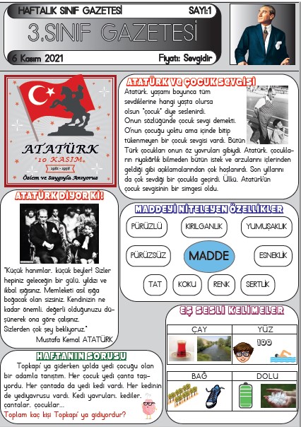 3. Sınıf gazetemiz ilk sayısı ile yayında.