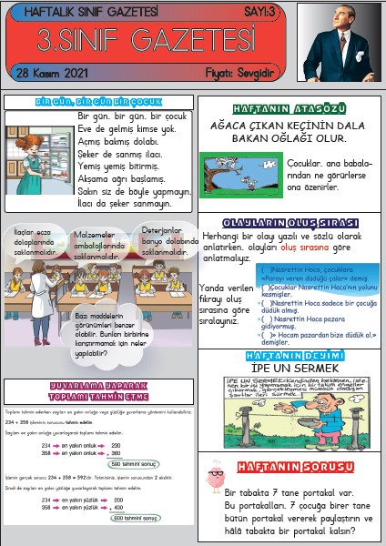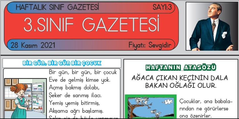 3. Sınıf gazetemiz üçüncü sayısı ile yayında.