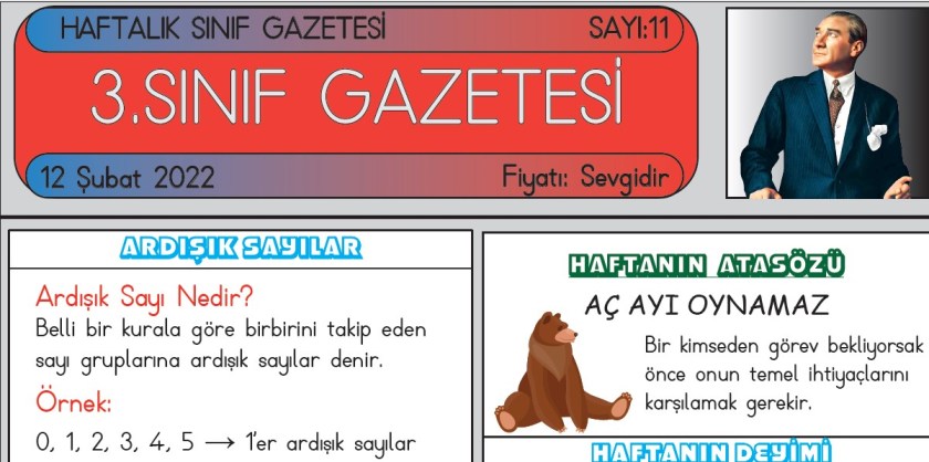 3. Sınıf gazetemiz on birinci sayısı ile yayında.