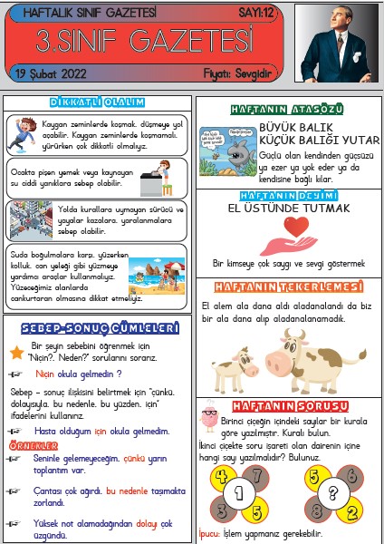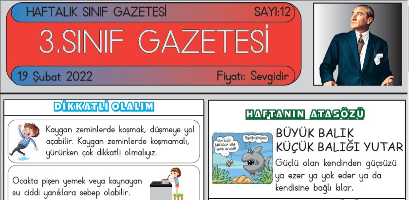 SINIF GAZETEMİZİN 12. SAYISI ÇIKTI Şubat 19, 2022 sinifininogretmeni SINIF GAZETESİ Yorum bırakın SINIF GAZETESİ SAYI 12 SINIF GAZETEMİZ YAYIMLANDI 3. Sınıf gazetemiz on ikinci sayısı ile yayında. Gazetemiz 6 Kasım’dan itibaren her hafta düzenli olarak yayımlanmaktadır. ESKİ SAYILARIMIZ SAYI 5 – SAYI 6 – SAYI 7 – SAYI 8 – SAYI 9 – SAYI10 – SAYI 11 12. SAYI İÇİN TIKLAYIN Bunu paylaş: Facebook üzerinde paylaş (Yeni pencerede açılır) Facebook WhatsApp'ta paylaş (Yeni pencerede açılır) WhatsApp Telegram'da paylaş (Yeni pencerede açılır) Telegram X'te paylaşın (Yeni pencerede açılır) X Beğen Yükleniyor... İlgili