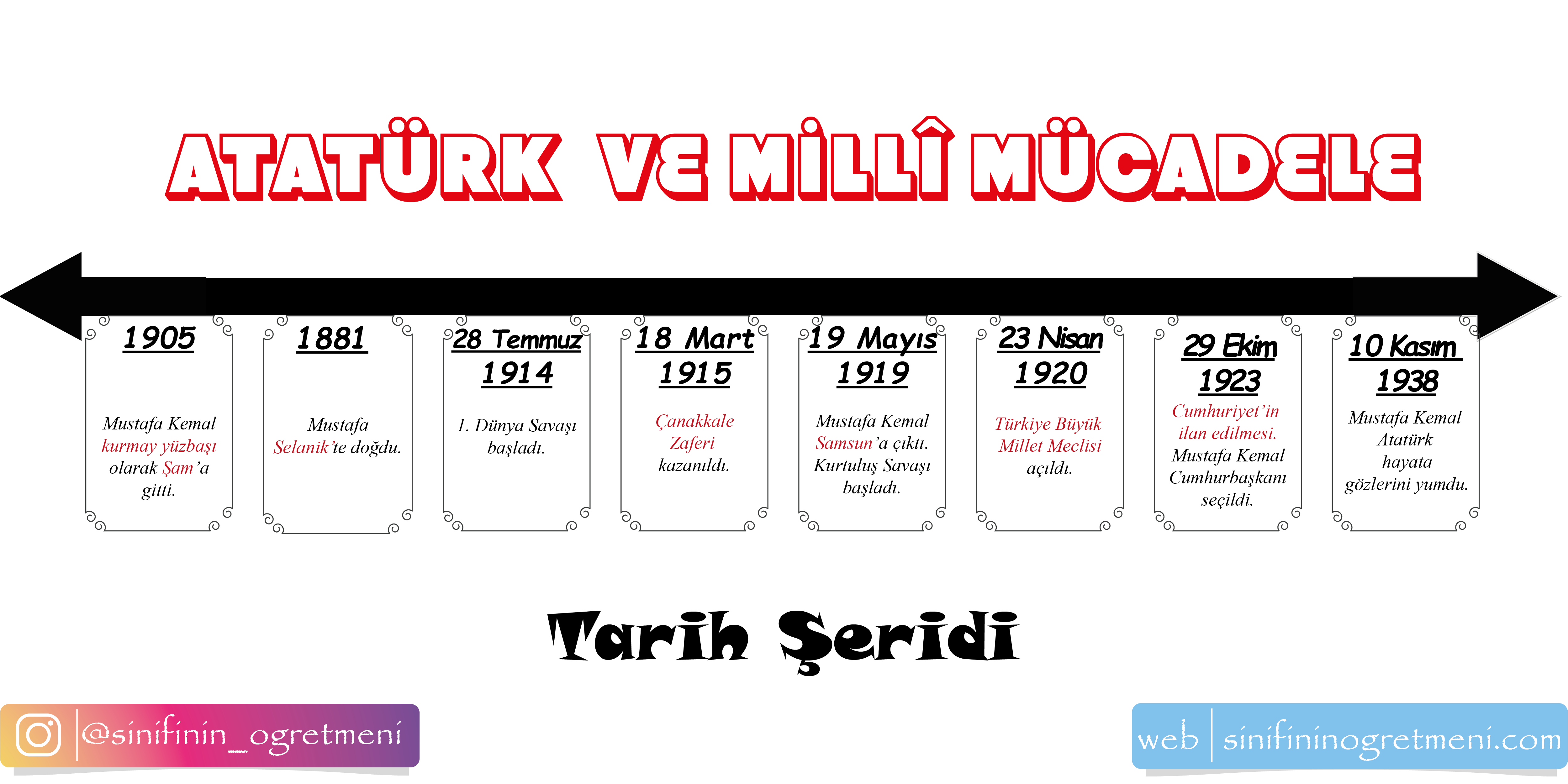 Sosyal bilgiler dersi millî mücadele konusunda kullanabileceğiniz tarih şeridi.