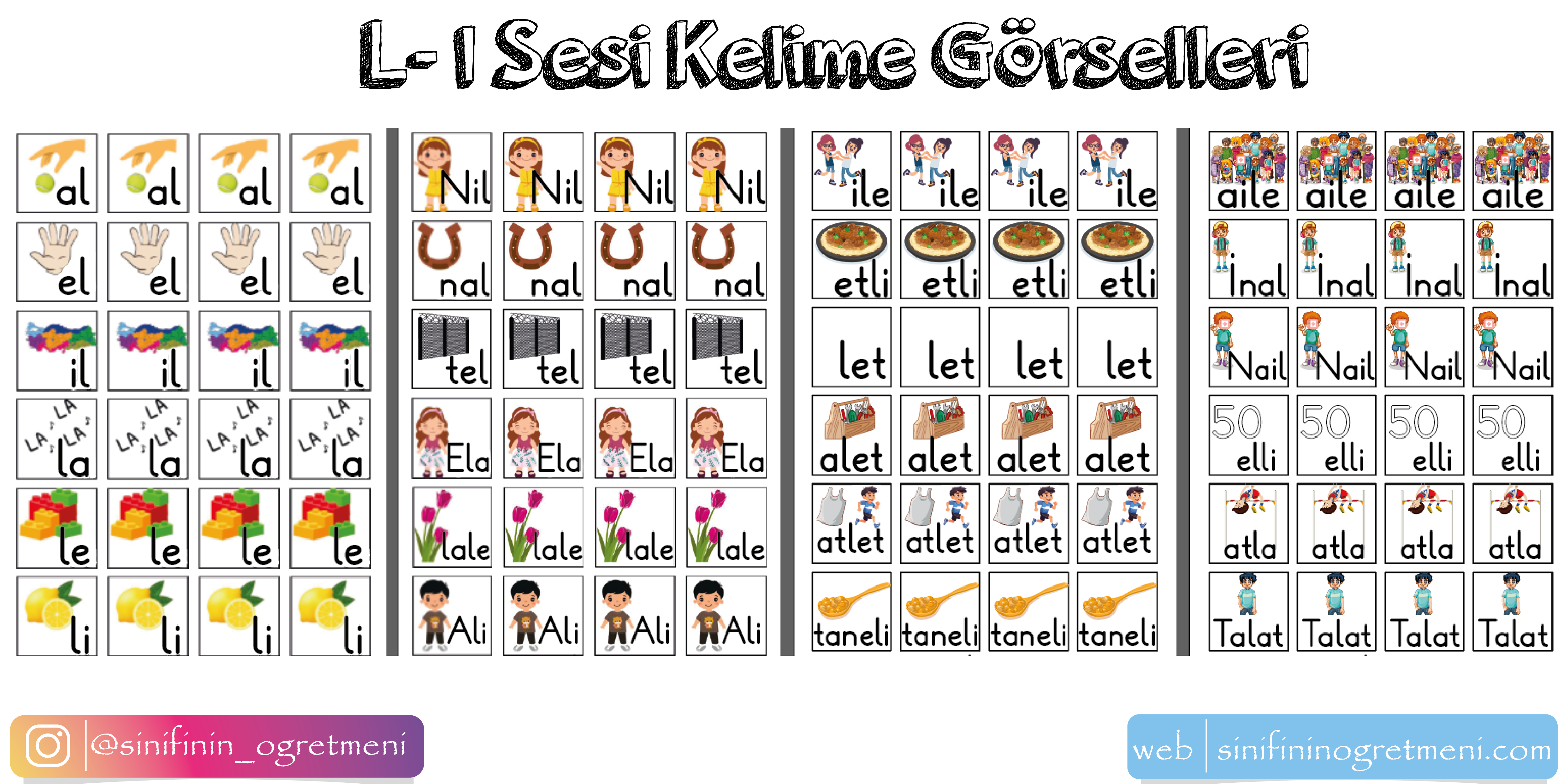 l – L Sesi Deftere Kes Yapıştır Resimli Kelime Kartları