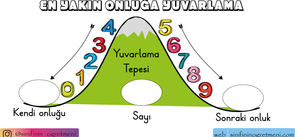 EN YAKIN ONLUĞA YUVARLAMA Bu çalışma kâğıdında; 2. sınıflar için en yakın onluğa yuvarlama konu anlatımı bulunmaktadır. Sayfayı büyük boyutlarda çıkarıp pano olarak kullanabilir, öğrenci