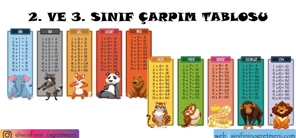 ÇARPIM TABLOSU Bu çalışmada; 2. sınıflar ve 3. sınıflar için çarpım tabloları bulunmaktadır.